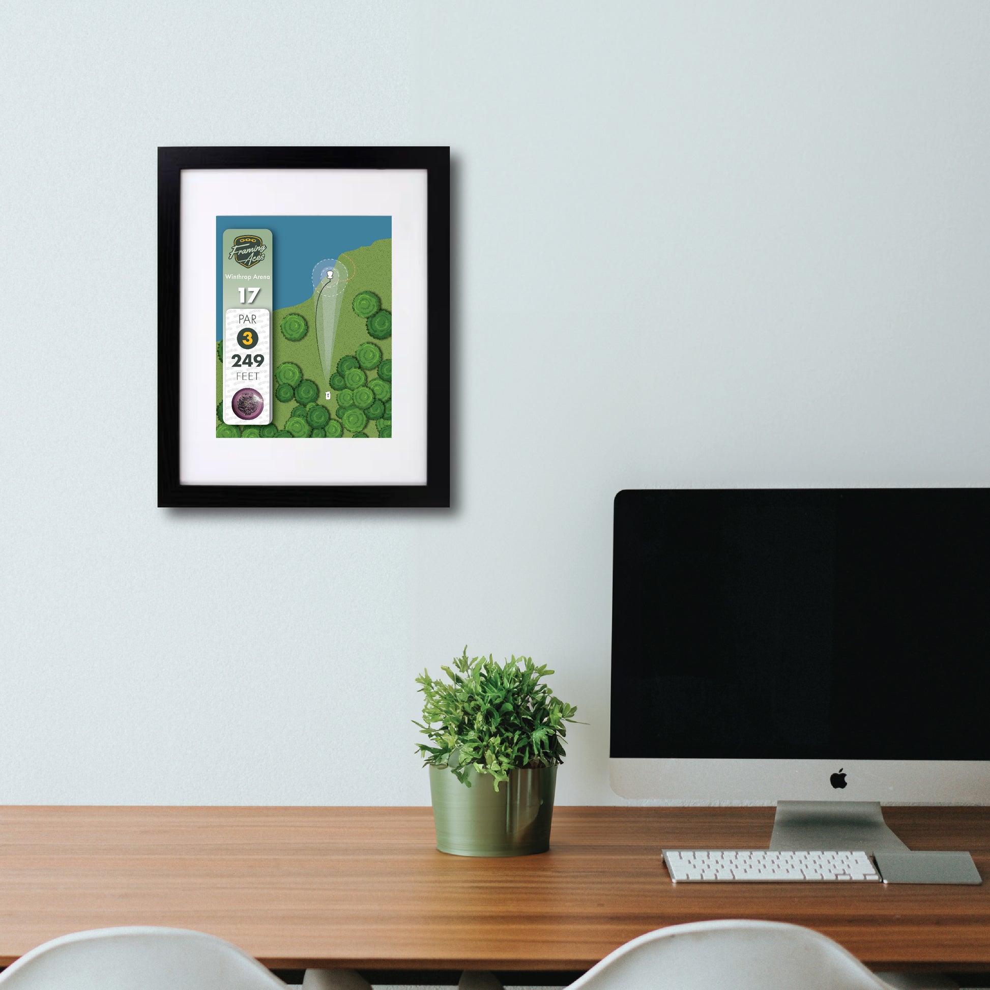 Hang it proudly in your home, office, or game room, as it serves as a symbol of your passion for the game. With its high-quality framing and personalized touch, our Ace Map Framed is perfect for any disc golfer who lives for the thrill of the ace.